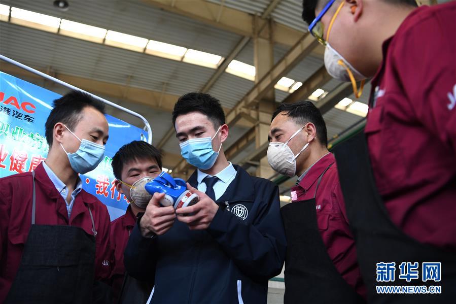 4月27日,常青街道凌大塘社區(qū)邀請專業(yè)人員到轄區(qū)企業(yè)車間為工人講解防護設(shè)備的使用方法。當日,安徽省合肥市包河區(qū)常青街道開展健康講座、職業(yè)病防護宣傳等系列活動,提高勞動者的自我防護意識和能力,迎接“五一”國際勞動節(jié)。新華社記者劉軍喜攝