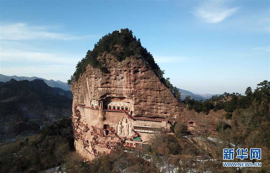 12月26日無(wú)人機(jī)拍攝的麥積山石窟。新華社記者馬寧攝