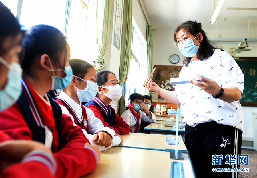 4月30日,諸暨市暨陽小學五年級4班班主任宣明霞在主題班會上向學生講解家庭用餐使用公筷公勺的重要性。當日,浙江省諸暨市暨陽小學五年級4班開展“公筷公勺新家風”主題班會活動,通過海報設計、情景劇表演等強化孩子們使用公筷公勺的意識,倡導文明用餐。新華社記者 韓傳號 攝