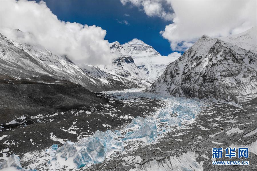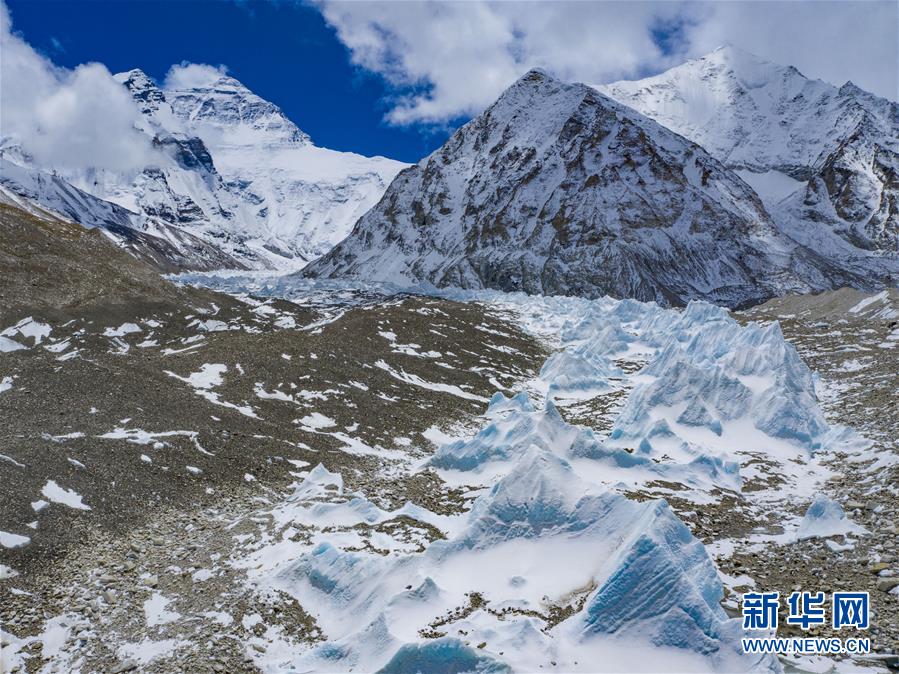 位于珠穆朗瑪峰腳下海拔5400米左右的中絨布冰川(4月30日攝,無人機照片)。位于珠穆朗瑪峰腳下海拔5400米左右的中絨布冰川,巍峨壯觀,冰塔林托起世界最高峰,讓人嘆為觀止。新華社記者旦增尼瑪曲珠攝