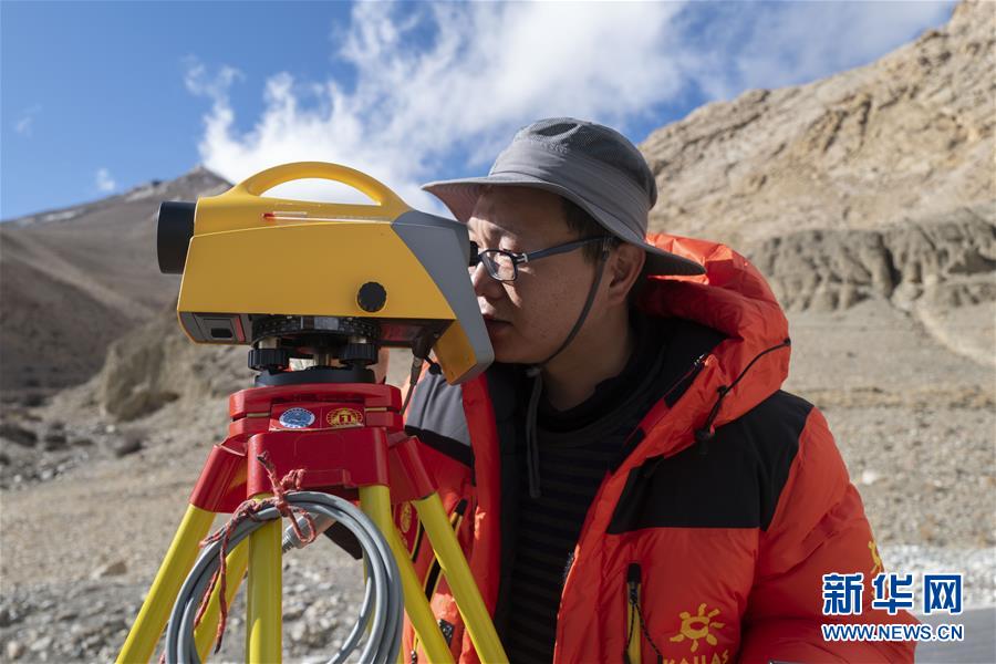 國測(cè)一大隊(duì)隊(duì)員楊明在西藏定日縣曲當(dāng)鄉(xiāng)境內(nèi)進(jìn)行水準(zhǔn)測(cè)量(5月4日攝)。水準(zhǔn)測(cè)量是一種利用提供水平視線的儀器(如水準(zhǔn)儀、水準(zhǔn)標(biāo)尺),測(cè)定地面不同點(diǎn)之間的高差,并以此推算高度的一種方法,是經(jīng)典大地測(cè)量的重要技術(shù)之一。在目前正在進(jìn)行的2020珠峰高程測(cè)量中,部分國測(cè)一大隊(duì)隊(duì)員承擔(dān)了水準(zhǔn)測(cè)量的任務(wù)。新華社記者普布扎西攝