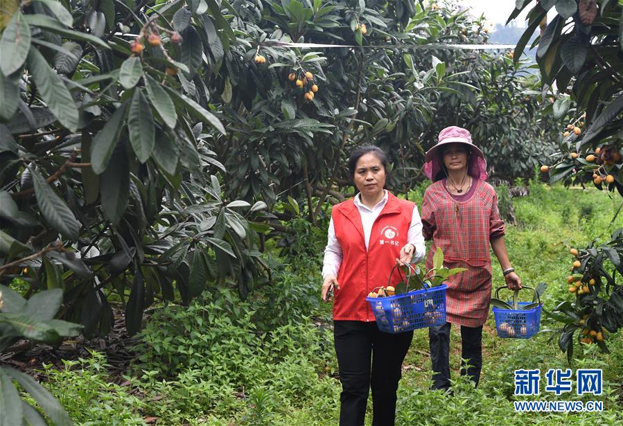 唐莉(左)在平樂縣張家鎮(zhèn)老埠村了解村民家庭農(nóng)場運(yùn)營情況(5月4日攝)。新華社記者周華攝