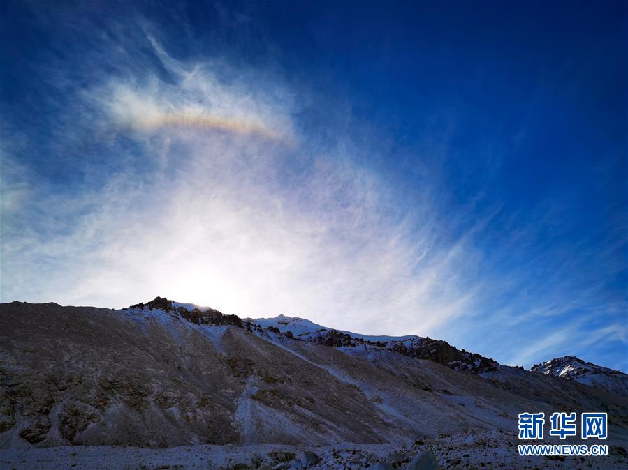 這是珠峰大本營上空的彩虹(5月3日攝)。珠穆朗瑪峰國家級自然保護區(qū)是以保護高山生態(tài)系統(tǒng)及其相鄰的高原自然景觀、豐富獨特的生物多樣性、具有重大科學(xué)價值的地史遺跡以及藏族歷史文化遺產(chǎn)為主的綜合性自然保護區(qū)。保護區(qū)內(nèi)生物資源豐富,景色壯美。新華社記者沈虹冰攝