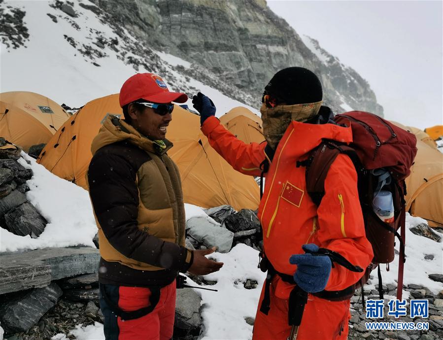 5月7日,2020珠峰高程測量登山隊進駐海拔6500米的前進營地。新華社特約記者拉巴攝