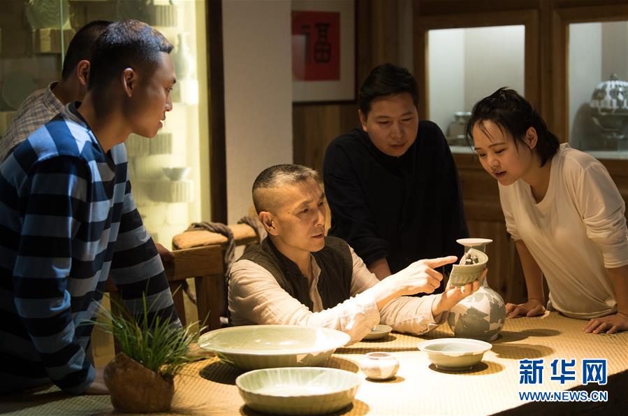 5月8日,項(xiàng)宏金在龍泉青瓷裝飾紋樣研究所和來(lái)訪的年輕瓷人分享古瓷。1965年出生的項(xiàng)宏金,被浙江龍泉年輕一代瓷人稱(chēng)為“項(xiàng)哥”,他從20世紀(jì)90年代開(kāi)始收集龍泉青瓷標(biāo)本,研究青瓷紋樣。2014年出版著作《龍泉青瓷裝飾紋樣》,次年開(kāi)設(shè)龍泉青瓷裝飾紋樣研究所,將自己收藏的千余件標(biāo)本跟瓷器愛(ài)好者、創(chuàng)作者免費(fèi)分享。新華社記者翁忻旸攝