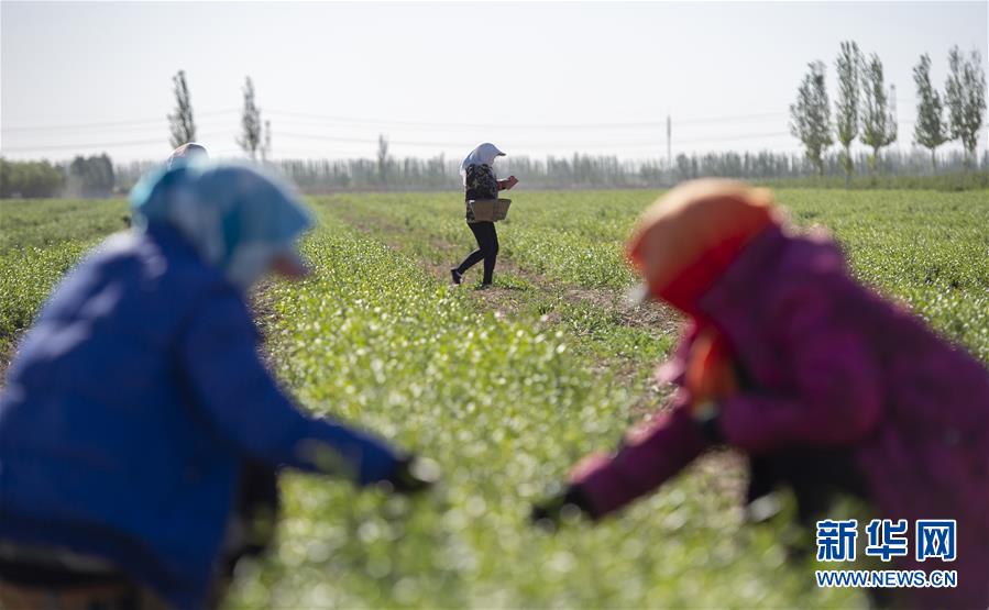 5月11日,采茶工在寧夏百瑞源賀蘭山基地采摘枸杞芽茶。當日,寧夏百瑞源賀蘭山基地枸杞芽茶全面進入采摘季。據(jù)了解,該基地茶園面積300余畝,助力附近200多名農(nóng)民就業(yè)增收。新華社記者楊植森攝