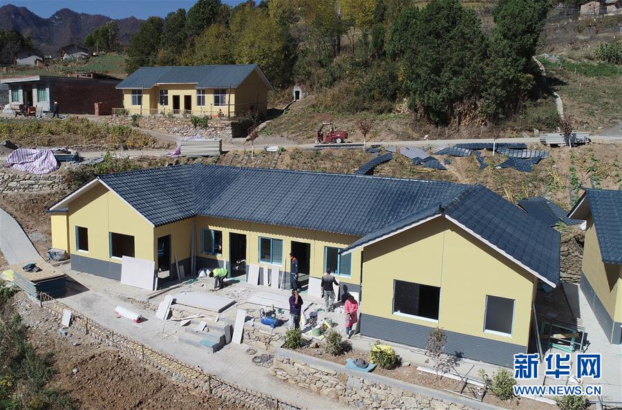 這是安康市漢濱區(qū)茨溝鎮(zhèn)西溝村針對D級危房進(jìn)行重建施工的輕鋼裝配式房屋(2018年10月29日攝,無人機(jī)照片)。新華社記者邵瑞攝