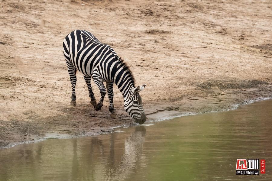 當(dāng)時(shí)有超過(guò)1000只斑馬,正在河岸上等候合適的機(jī)會(huì)過(guò)河,它們快速低頭喝水后又迅速返回河岸。