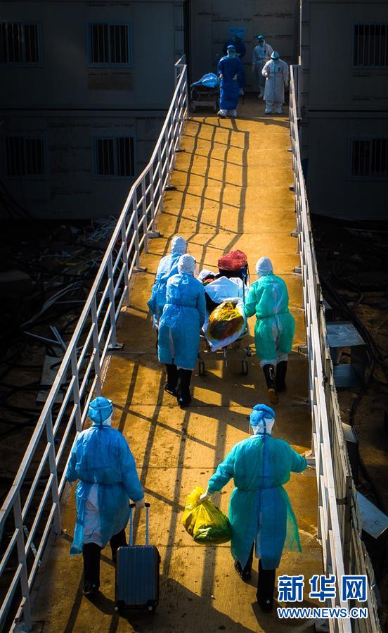 醫(yī)護(hù)人員走向武漢火神山醫(yī)院病房(2月4日攝)。新華社記者肖藝九攝