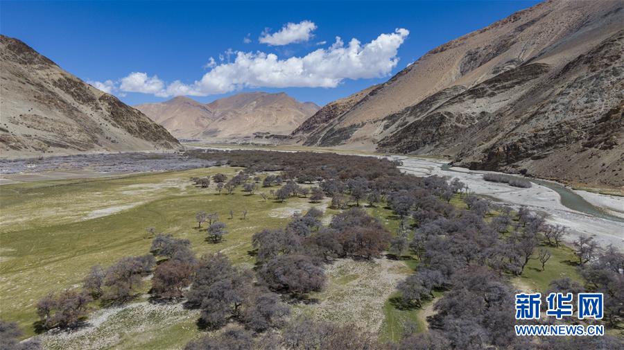 珠穆朗瑪峰國家級自然保護區(qū)內的沙棘林(5月16日攝,無人機照片)。新華社記者孫非攝