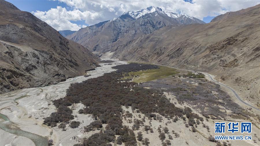 珠穆朗瑪峰國家級自然保護區(qū)內的沙棘林和濕地(5月16日攝,無人機照片)。新華社記者普布扎西攝