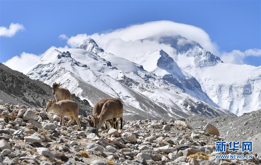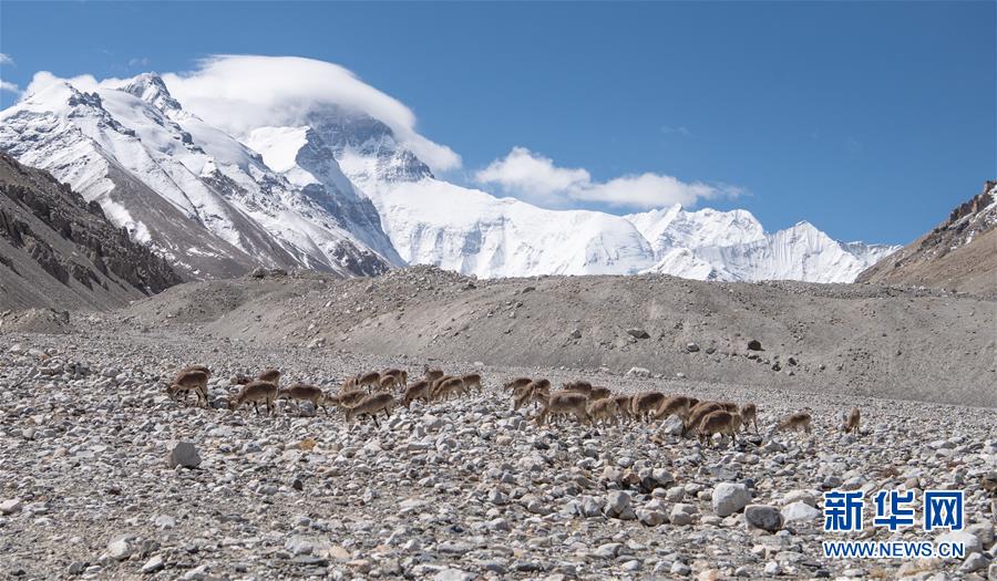 棲息在珠穆朗瑪峰國家級自然保護區(qū)內的巖羊(5月8日攝)。新華社記者晉美多吉攝