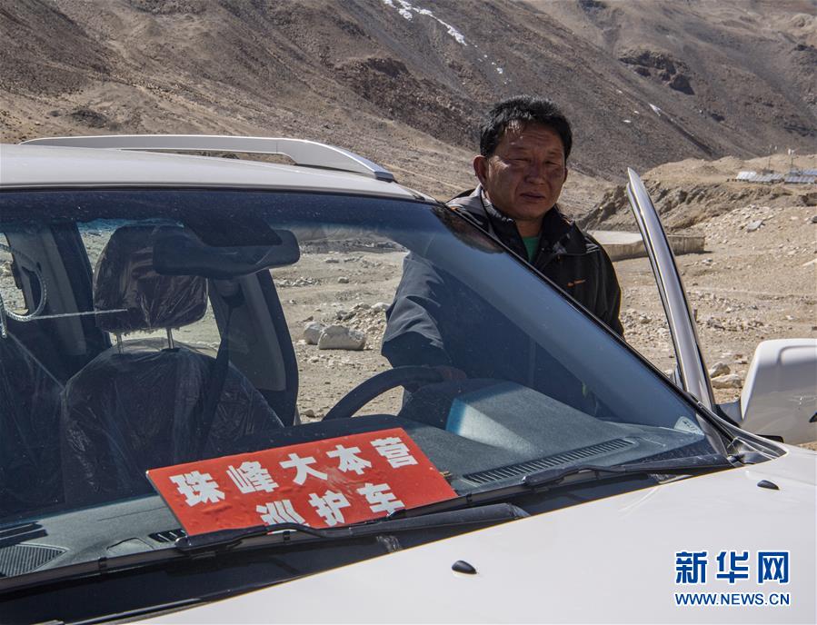 拉巴次仁駕駛巡護車在珠穆朗瑪峰國家級自然保護區(qū)內巡邏(5月15日攝)。新華社記者孫非攝