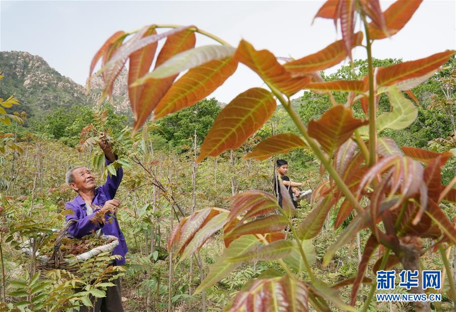 5月17日,秦皇島市撫寧區(qū)王家灣村的村民在自家香椿園采摘香椿芽。近年來(lái),河北省秦皇島市撫寧區(qū)王家灣村村委會(huì)帶領(lǐng)村民在坡嶺荒地種植紅香椿樹(shù)1000多畝,綠化了荒坡荒地,增加了農(nóng)民收入。新華社記者楊世堯攝