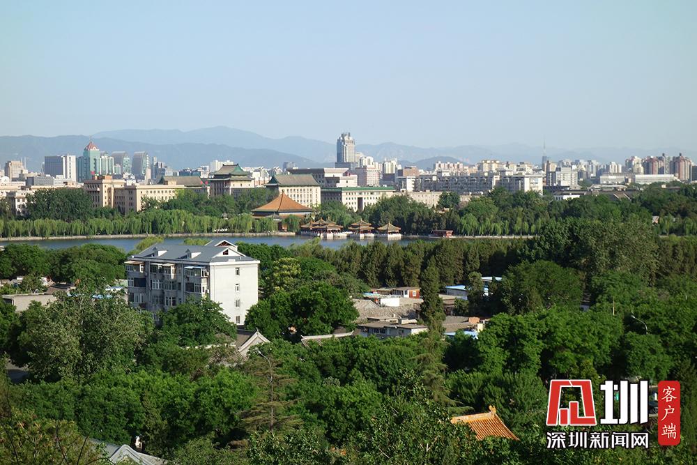 2020年5月18日,北京,天氣晴好碧空萬(wàn)里,游客在景山公園登高遠(yuǎn)望,北京城壯美景觀盡收眼底。