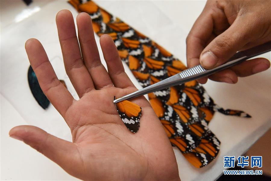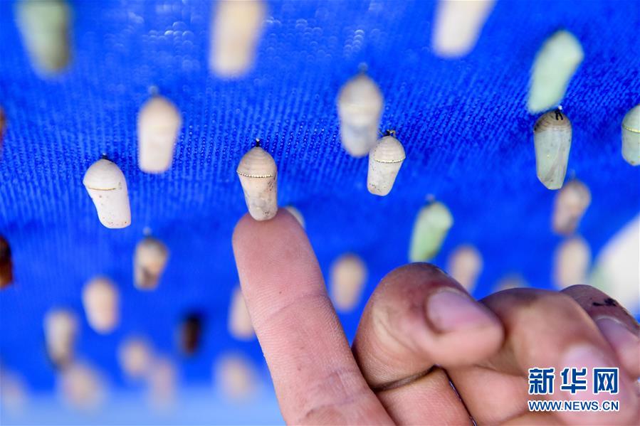 在吉木薩爾縣七彩蝶園,關(guān)富云在制作蝴蝶標(biāo)本(5月15日攝)。走進(jìn)關(guān)富云的七彩蝶園,游客不僅可以近距離接觸翩翩起舞的蝴蝶,還可以欣賞蝴蝶破繭成蝶的蛻變過程。今年34歲的關(guān)富云用9年的時(shí)間實(shí)現(xiàn)了自己的“蝴蝶夢(mèng)”,完成美麗的“蝶變”。關(guān)富云家住新疆吉木薩爾縣北地社區(qū)。2011年,他看到一檔農(nóng)業(yè)致富節(jié)目,萌生了養(yǎng)殖蝴蝶的想法。關(guān)富云說,當(dāng)時(shí)蝴蝶養(yǎng)殖還是一種新興產(chǎn)業(yè),他抱著試一試的想法,在海南學(xué)習(xí)了3個(gè)月蝴蝶養(yǎng)殖,帶回100多個(gè)蝶蛹在家試驗(yàn)養(yǎng)殖。蝴蝶的生存周期短,在當(dāng)?shù)仞B(yǎng)殖需要克服溫度、濕度、病蟲害等問題。關(guān)富云不斷嘗試,越挫越勇,羽化成功的蝴蝶在2014年終于突破了萬只。蝴蝶的色彩艷麗,活體蝴蝶可用于婚慶、開業(yè)慶典等活動(dòng)中放飛,可以取得很好的收益。但它的生命短暫,如何才能最大化蝴蝶的效益,留住它的美呢?關(guān)富云動(dòng)起了心思,開始嘗試制作標(biāo)本和蝶翅畫?!昂宛B(yǎng)殖不同,做蝶翅畫是個(gè)創(chuàng)作的過程,從選擇標(biāo)本到粘貼,每一步都要突出美感?!标P(guān)富云介紹,一幅色彩明艷、栩栩如生的蝶翅畫耗時(shí)多日才能完成。如今,關(guān)富云的活體蝴蝶和蝶翅畫通過線上線下銷售,產(chǎn)品還銷往北京、廈門等地。關(guān)富云的蝴蝶產(chǎn)品得到市場的認(rèn)可,政府也對(duì)他給予大力支持。2019年,吉木薩爾縣在泉子街鎮(zhèn)建起蝴蝶觀賞園,吸引了不少游客到此參觀游玩。對(duì)于未來的發(fā)展,關(guān)富云信心滿滿,“我希望把蝴蝶產(chǎn)業(yè)發(fā)展到天山南北,讓人們?cè)诤涞亩疽材苡^賞到蝴蝶,并且讓更多人參與其中,致富脫貧”。新華社記者丁磊攝