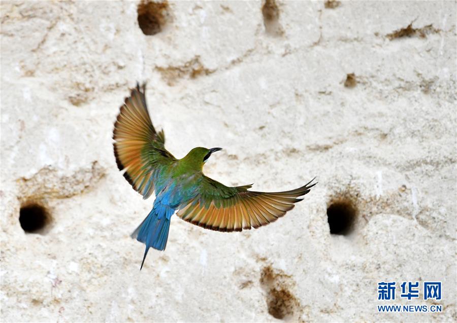 這是5月19日在廈門五緣灣栗喉蜂虎自然保護(hù)區(qū)拍攝的栗喉蜂虎。近日,大批栗喉蜂虎來到廈門五緣灣栗喉蜂虎自然保護(hù)區(qū)棲息、繁殖。新華社記者魏培全攝