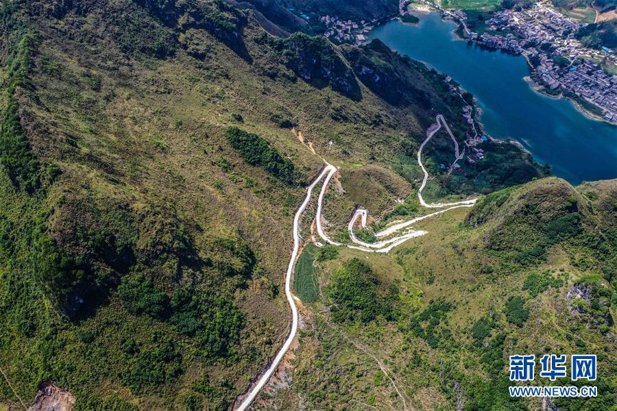 這是去年底通車的大化瑤族自治縣七百弄鄉(xiāng)江棟村那徐屯至弄獎(jiǎng)屯公路(5月14日攝,無人機(jī)照片)。新華社記者曹祎銘攝