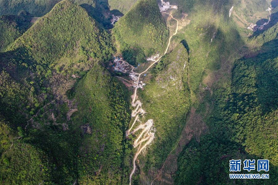 這是在進行路面硬化的大化瑤族自治縣七百弄鄉(xiāng)弄合村弄魯屯到弄確屯的屯級路(5月14日攝,無人機照片)。新華社記者曹祎銘攝