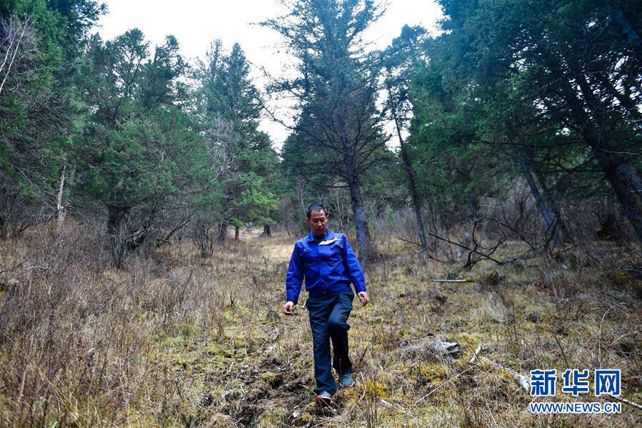 在青海省果洛藏族自治州班瑪縣境內(nèi)的瑪可河林區(qū),瑪可河林場護(hù)林員朱福海在巡查(2019年11月12日攝)。新華社記者張龍攝
