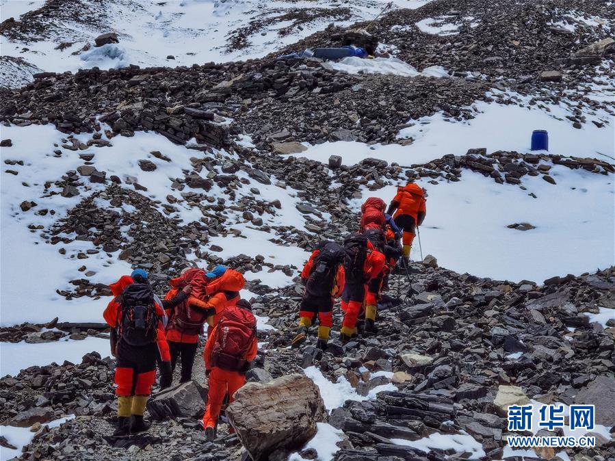5月24日,2020珠峰高程測量登山隊部分人員從海拔6500米的前進營地出發(fā)。