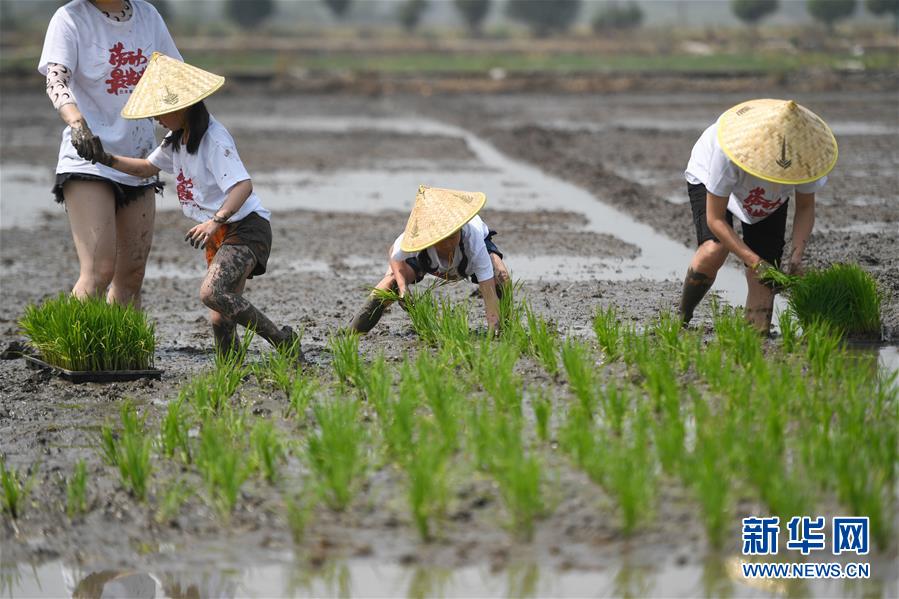 5月24日,小朋友與家長(zhǎng)在稻田里參加親子插秧比賽。當(dāng)日,十余名小朋友在家長(zhǎng)的帶領(lǐng)下來(lái)到浙江省湖州市吳興區(qū)八里店鎮(zhèn)尹家圩糧油植保農(nóng)機(jī)專(zhuān)業(yè)合作社的稻田中,參加親子插秧、稻田捉魚(yú)等農(nóng)事體驗(yàn)活動(dòng)。新華社記者黃宗治攝
