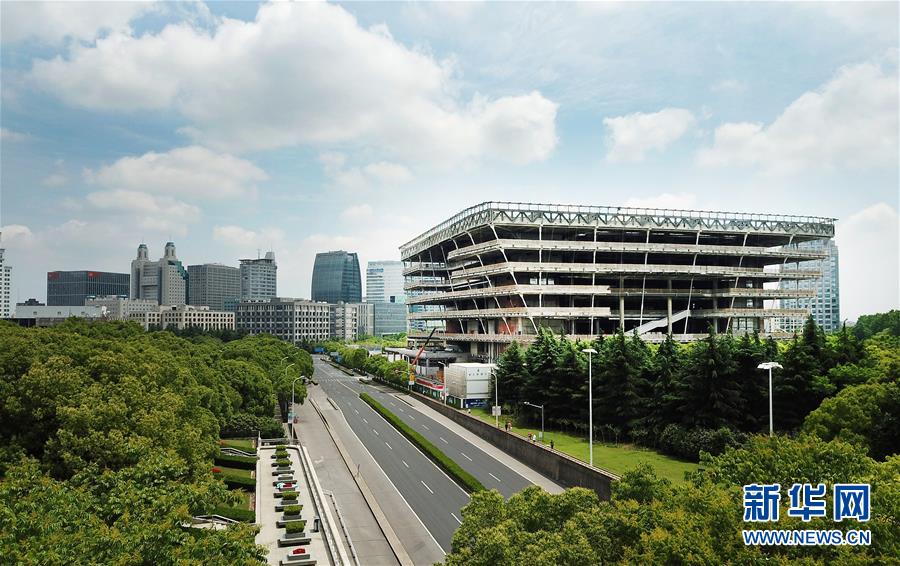 5月22日拍攝的建設(shè)中的上海圖書館東館(無人機照片)。 上海圖書館東館位于上海浦東新區(qū),總建筑面積11.5萬平方米。目前,建設(shè)工程正在緊鑼密鼓地進行,預(yù)計將在2020年內(nèi)竣工,2021年試開放運營。 新華社記者 方喆 攝