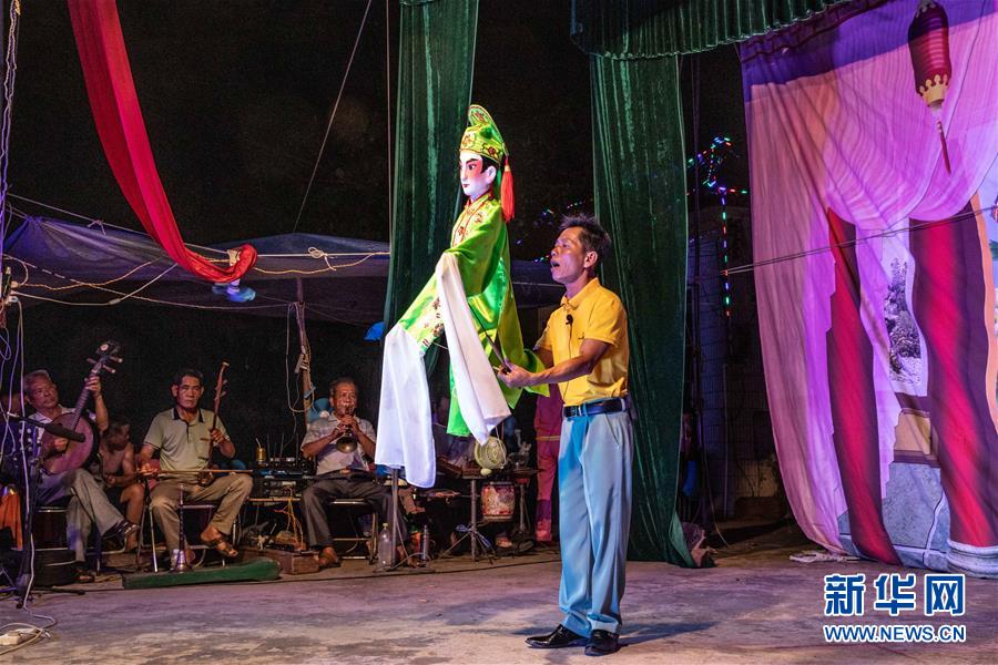 5月24日,海南臨高新風人偶戲團在臨高縣美朗村演出。