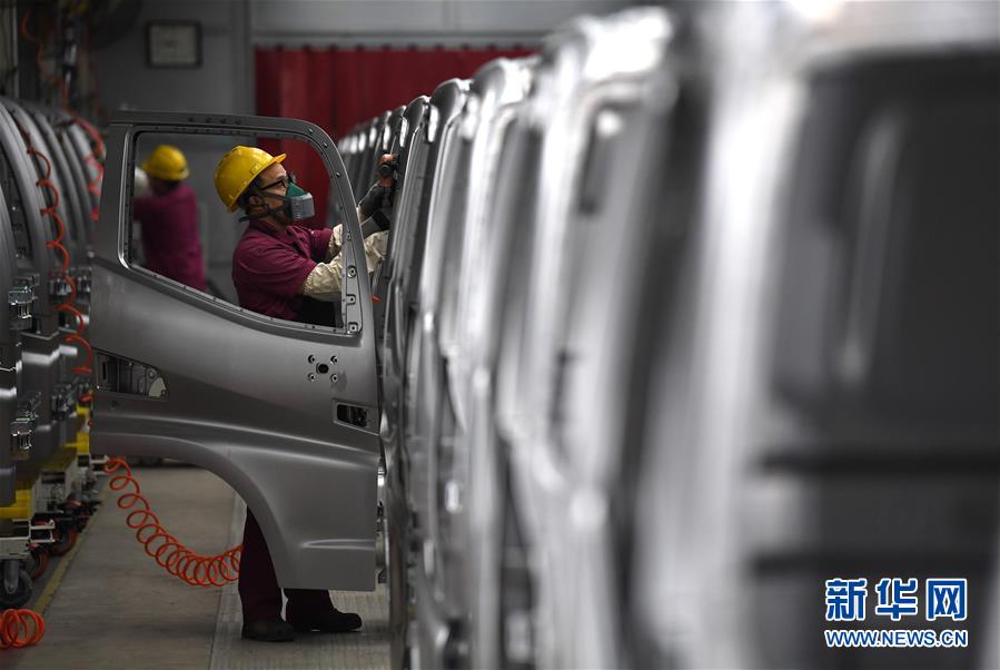 5月26日,工人在江淮汽車新港基地輕卡生產(chǎn)區(qū)內(nèi)忙碌。新華社記者劉軍喜攝