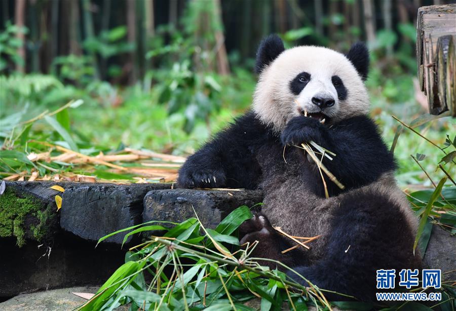 5月27日,大熊貓婷仔在享受竹子大餐。正在享受竹子大餐的廣州長隆野生動物世界大熊貓婷仔被大熊貓隆仔搶食,兩只大熊貓上演一場爭食戲碼。新華社記者劉大偉攝