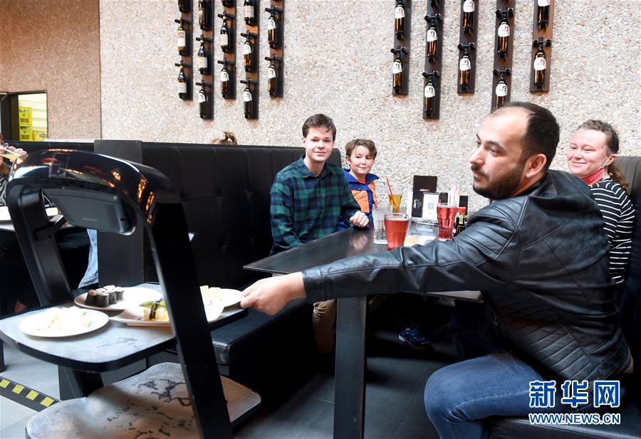 5月28日,在奧地利維也納一家亞洲餐廳內(nèi),機(jī)器人給顧客上菜。維也納的一家亞洲餐廳于疫情期間重新營業(yè)后,更多利用機(jī)器人上菜,以減少服務(wù)員和顧客之間的非必要接觸。新華社記者郭晨攝