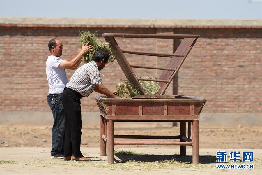 6月2日,在新疆野馬繁殖研究中心,工作人員在運(yùn)送草料。新華社記者丁磊攝。