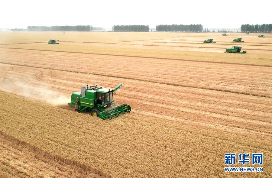 “三夏”時節(jié),中原大地一片金黃。位于河南省周口市的黃泛區(qū)農(nóng)場機聲隆隆,10萬畝小麥收獲正酣。