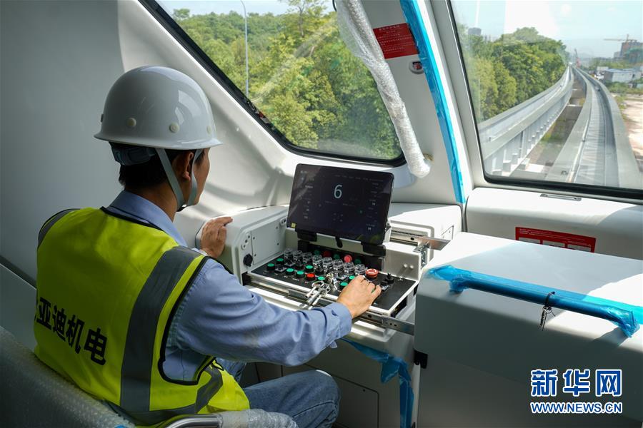 6月3日,工程技術(shù)人員在“云巴”車廂內(nèi)對(duì)自動(dòng)駕駛系統(tǒng)進(jìn)行調(diào)試。近日,重慶市首條“云巴”示范線項(xiàng)目在重慶璧山區(qū)正式亮相。此次發(fā)布的“云巴”采用電能驅(qū)動(dòng),具有轉(zhuǎn)彎半徑小、爬坡能力強(qiáng)、噪音低、安全性高、建設(shè)成本低、建造周期短等優(yōu)勢(shì),能為乘客提供更智能、舒適、便捷的出行體驗(yàn)。據(jù)介紹,璧山區(qū)“云巴”示范線項(xiàng)目自2019年8月開建,線路正線全長(zhǎng)15.4km,共設(shè)車站15座,預(yù)計(jì)2020年9月全線通車。新華社記者劉潺攝。