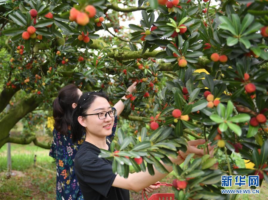 6月3日,游客在上虞區(qū)驛亭鎮(zhèn)真山楊梅基地采摘。近日,浙江紹興上虞區(qū)二都楊梅開(kāi)采。楊梅是上虞區(qū)傳統(tǒng)特色農(nóng)產(chǎn)品,目前上虞區(qū)二都楊梅種植面積1651公頃,年產(chǎn)量1.1萬(wàn)噸,2019年二都楊梅成功申報(bào)國(guó)家農(nóng)產(chǎn)品地理標(biāo)志認(rèn)證。新華社記者翁忻旸攝。