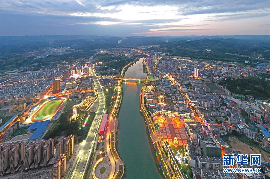 廣西環(huán)江毛南族自治縣縣城夜景(5月22日攝,無人機照片)。新華社記者周華攝。