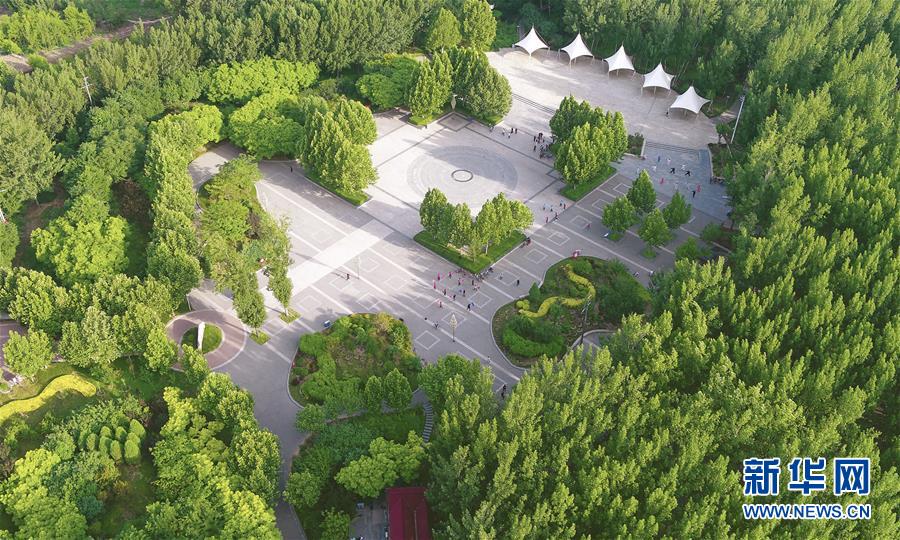這是6月5日拍攝的文安縣森林公園(無人機(jī)照片)。近年來,河北省文安縣將植樹造林與城市建設(shè)有機(jī)融合,探索“政府引導(dǎo)、企業(yè)運(yùn)作、多方共贏”的市場化植樹造林新模式,大規(guī)模推進(jìn)國土綠化,打造人與自然和諧共生的優(yōu)美生態(tài)環(huán)境,構(gòu)筑京津雄綠色屏障。截至目前,該縣森林覆蓋率已經(jīng)達(dá)到33%,城區(qū)綠地面積達(dá)到36.48%。新華社記者李曉果攝。