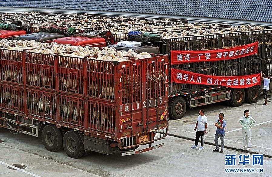 6月7日,裝運湖羊的貨車準備發(fā)車。當日,浙江省湖州市南潯區(qū)湖羊養(yǎng)殖場飼養(yǎng)的五千余頭湖羊啟程運往該區(qū)對口幫扶的四川省廣安市廣安區(qū)。2018年以來,南潯區(qū)依托湖羊養(yǎng)殖產(chǎn)業(yè)優(yōu)勢,積極實施“湖羊入川”和“湖羊致富”工程,向對口幫扶地區(qū)提供優(yōu)質湖羊種羊和湖羊養(yǎng)殖技術指導。截至目前,南潯區(qū)已向廣安等地提供1.2萬余頭扶貧湖羊。新華社記者譚進攝