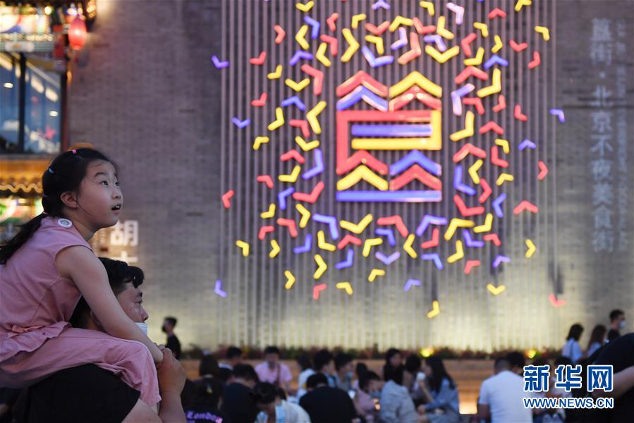 6月6日傍晚時分,一位小朋友和家長在簋街排隊等候就餐。6月6日晚,北京79個地標、商圈、特色街區(qū)同時點亮夜京城,營造消費氛圍,北京“夜經(jīng)濟”也加速回暖。新華社記者鞠煥宗攝
