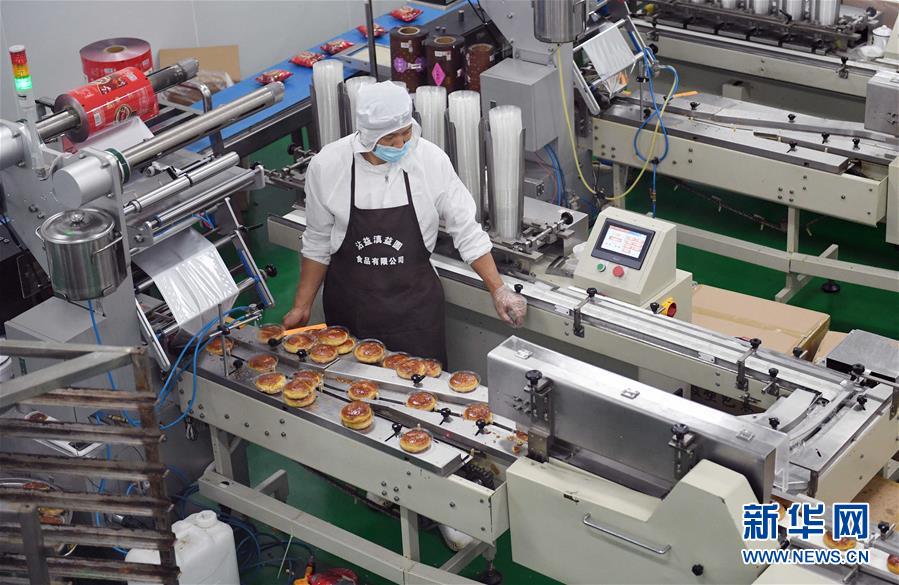6月6日,云南曲靖市沾益區(qū)一家食品公司的工人在生產(chǎn)車間制作沾益小粑粑。沾益小粑粑是云南省曲靖市沾益區(qū)一種獨(dú)具風(fēng)味的特色食品,采用優(yōu)質(zhì)上等食材,經(jīng)過20道工序精心制作而成,受到消費(fèi)者歡迎。沾益小粑粑產(chǎn)業(yè)也帶動(dòng)當(dāng)?shù)剞r(nóng)民實(shí)現(xiàn)增收。新華社記者楊宗友攝