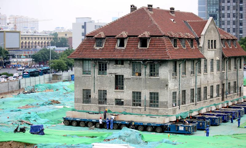 山東濟(jì)南2600噸百年修女樓坐“車”準(zhǔn)備平移