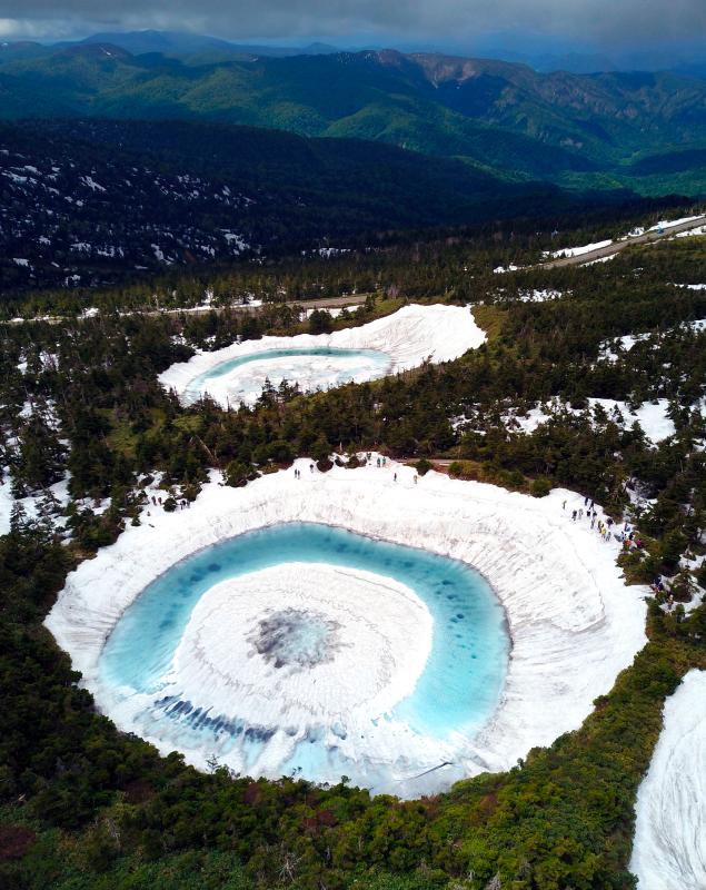 當(dāng)?shù)貢r間2020年6月8日,日本,在橫跨巖手縣與秋田縣的八幡平山頂附近的“鏡沼”,伴隨著“鏡沼”的積雪從外側(cè)逐漸融化,外圍的碧藍色湖水與中心部的潔白積雪相映成趣,呈現(xiàn)出獨特的類似“龍眼”的景象。據(jù)悉,八幡平“龍眼”奇景只在每年5月下旬至6月初的雪融期間短暫出現(xiàn)。