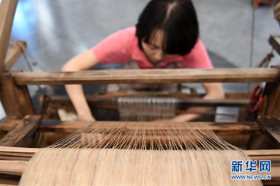 6月12日,在重慶榮昌的天運(yùn)夏布會(huì)館,非遺傳承人馬琳沁在用織布機(jī)織造榮昌夏布。新華社記者 唐奕 攝