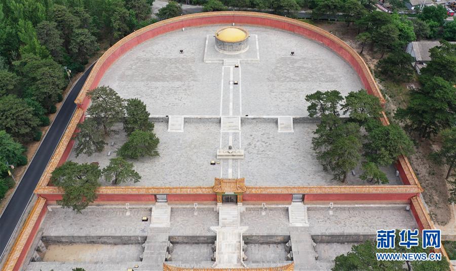 這是清西陵昌西陵寶頂和回音壁(6月18日攝,無人機照片)。新華社記者朱旭東攝