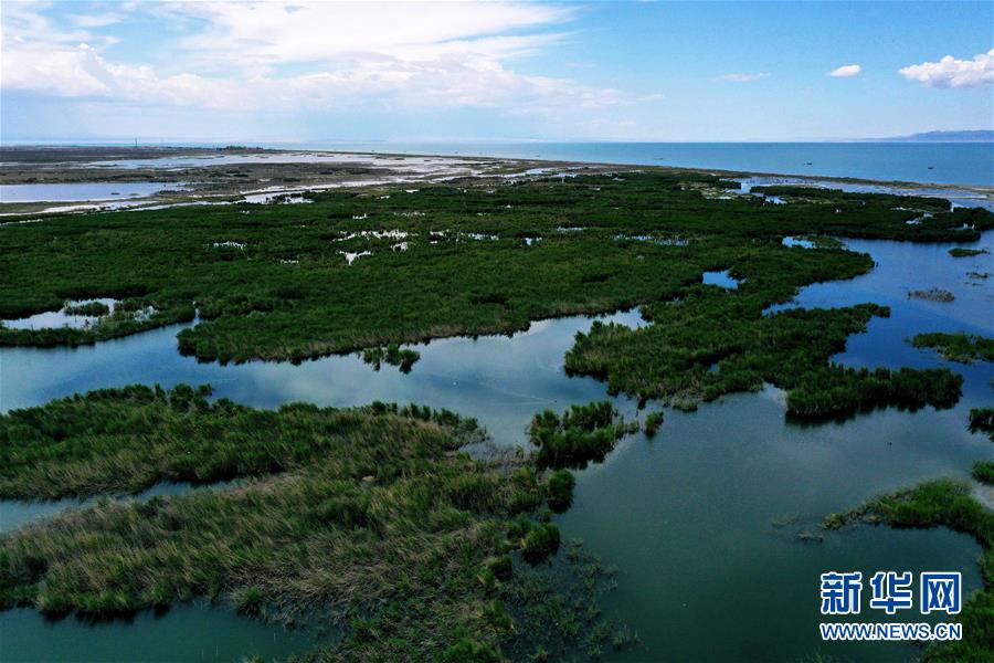 6月19日拍攝的新疆烏倫古湖國家濕地公園(無人機照片)。烏倫古湖國家濕地公園位于新疆阿勒泰地區(qū)福??h城以西,由烏倫古湖和吉力湖兩部分組成。烏倫古湖濕地公園是遷徙候鳥飛越天山和阿爾泰山的“能量補充站”,良好的濕地生態(tài)吸引著大量遷徙鳥類在此集結(jié)成群,繁殖棲息,成為一道靚麗的風(fēng)景線。新華社記者 沙達(dá)提 攝