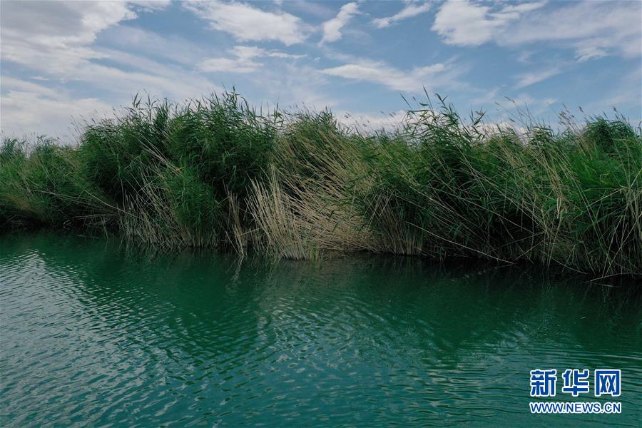 6月19日拍攝的新疆烏倫古湖國家濕地公園(無人機(jī)照片)。烏倫古湖國家濕地公園位于新疆阿勒泰地區(qū)福海縣城以西,由烏倫古湖和吉力湖兩部分組成。烏倫古湖濕地公園是遷徙候鳥飛越天山和阿爾泰山的“能量補(bǔ)充站”,良好的濕地生態(tài)吸引著大量遷徙鳥類在此集結(jié)成群,繁殖棲息,成為一道靚麗的風(fēng)景線。新華社記者 沙達(dá)提 攝