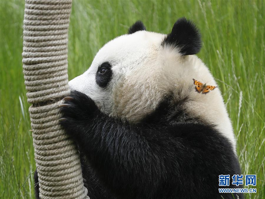 在位于四川省阿壩藏族羌族自治州的九寨溝大熊貓園,大熊貓“海?!痹谕嫠#?月19日攝)。新華社記者沈伯韓攝