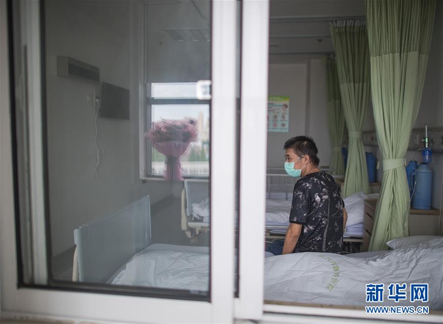 6月17日,胡定江在病房等待出院,窗臺的鮮花是他準(zhǔn)備在出院時送給醫(yī)護人員的。用過ECMO(人工膜肺)等設(shè)備,經(jīng)過多省市專家的聯(lián)合救治,在院100多天,先后經(jīng)歷了ICU、過渡病房、隔離病房、普通病房的40歲新冠肺炎康復(fù)患者胡定江,目前康復(fù)良好,經(jīng)專家研判,于6月17日出院。新華社記者肖藝九攝