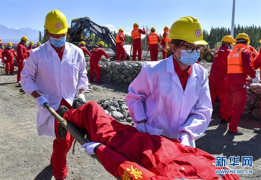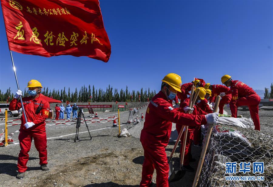 6月22日,應(yīng)急搶險隊員參加演練。當(dāng)日,新疆維吾爾自治區(qū)公路管理局組織的2020年國省干線公路突發(fā)地質(zhì)災(zāi)害應(yīng)急演練在烏魯木齊舉行,演練模擬烏魯木齊市柴窩堡區(qū)域遭受強降雨,誘發(fā)附近水域突發(fā)洪水,公路路基面臨被洪水沖毀的險情,組織搶險人員和機械設(shè)備在指定時間內(nèi)趕赴受災(zāi)現(xiàn)場實施應(yīng)急搶險處置。此次演練將進一步增強各相關(guān)部門的防災(zāi)減災(zāi)意識,提高公路應(yīng)急搶險處突能力。新華社記者王菲攝