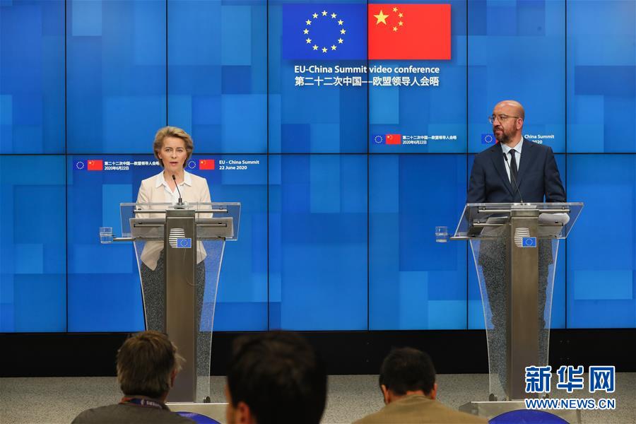 6月22日,歐洲理事會(huì)主席米歇爾(右)和歐盟委員會(huì)主席馮德萊恩在位于比利時(shí)布魯塞爾的歐盟總部出席第二十二次中國(guó)-歐盟領(lǐng)導(dǎo)人會(huì)晤后舉行的新聞發(fā)布會(huì)。新華社記者鄭煥松攝